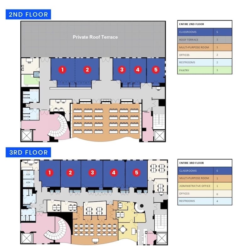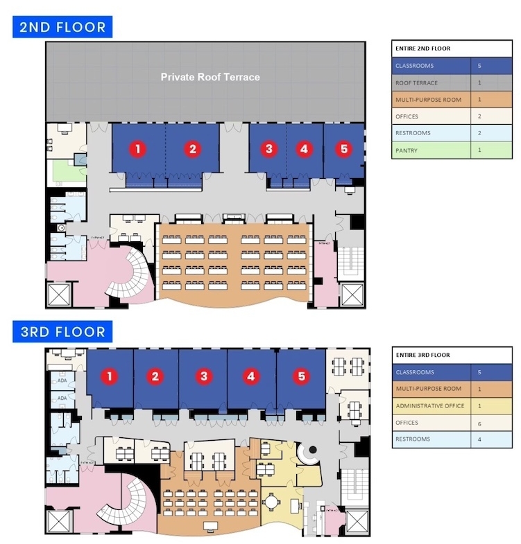 • Multiple large open areas and private rooms